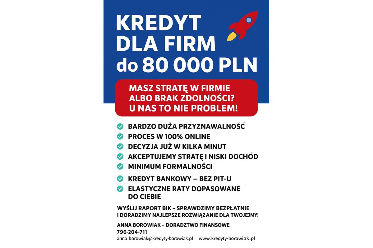KREDYT DLA FIRM do 80 000 PLN